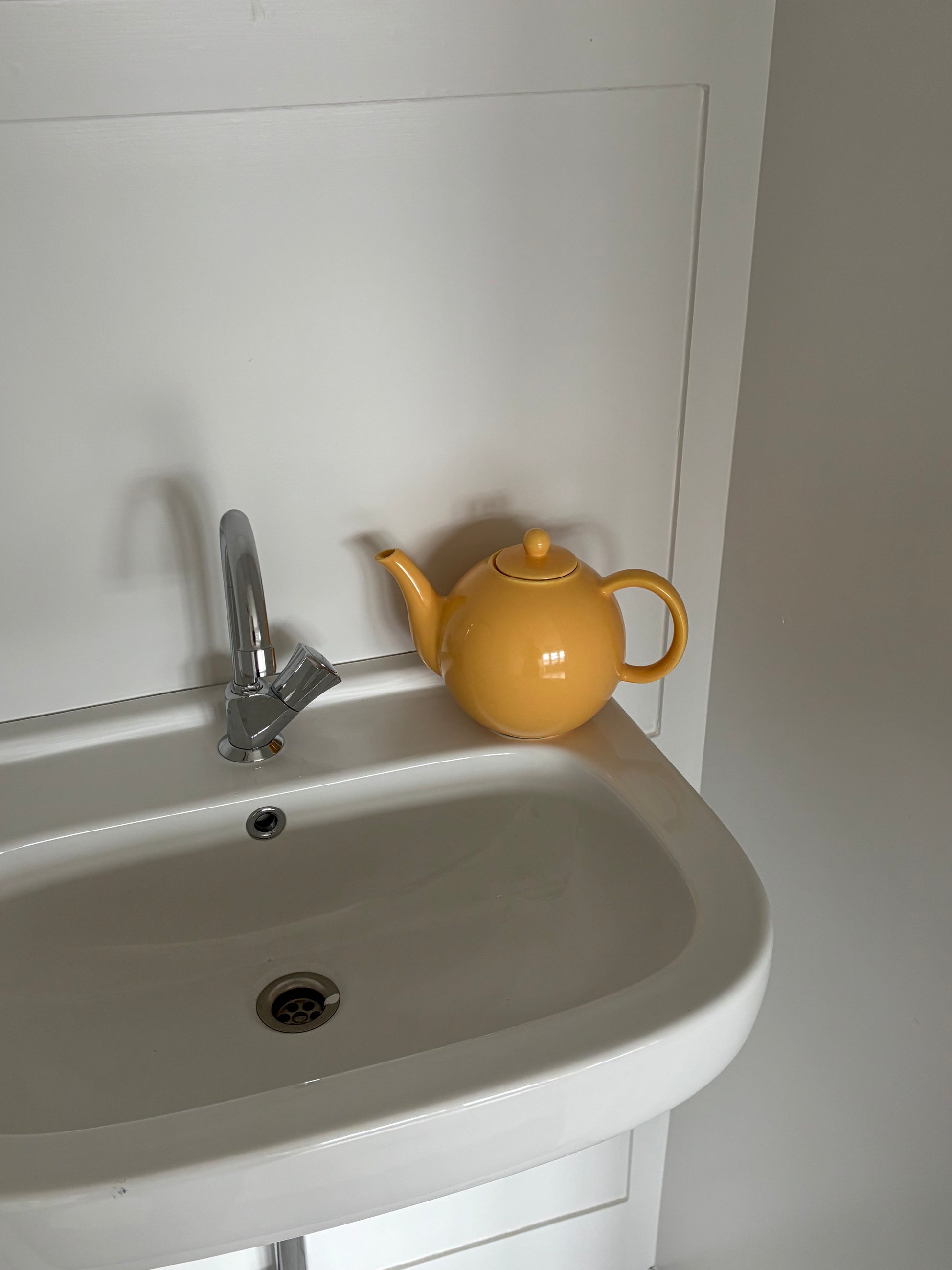 This might be the cutest teapot I've ever found. The colour is soft yellow, or if we stay on trend: butter yellow. The colour is a bit lighter than on the pictures (second picture shows the colour the best).