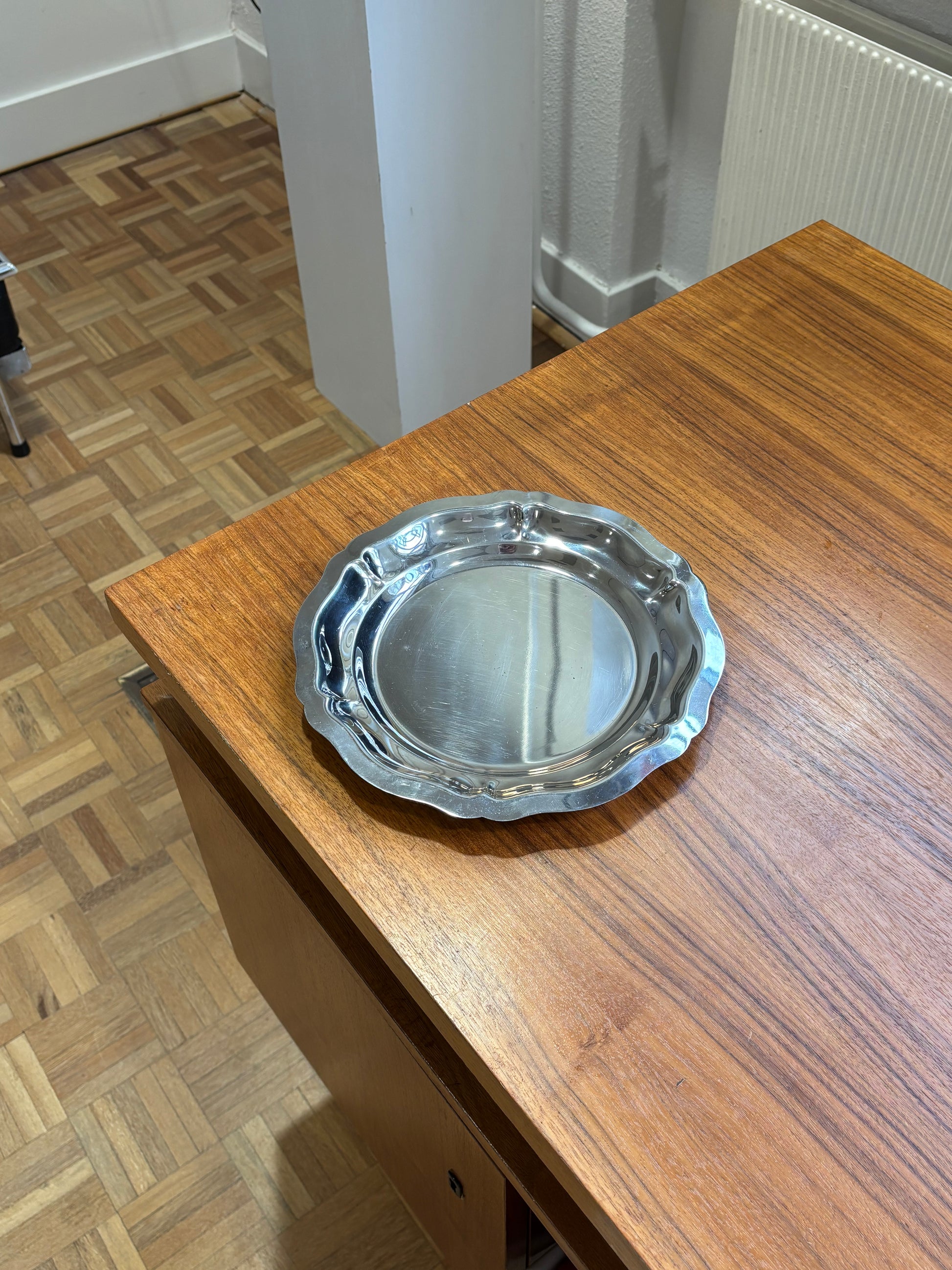 Classic stainless steel round dish. Perfect to serve a shared dish, your perfect sourdough or some cheese.