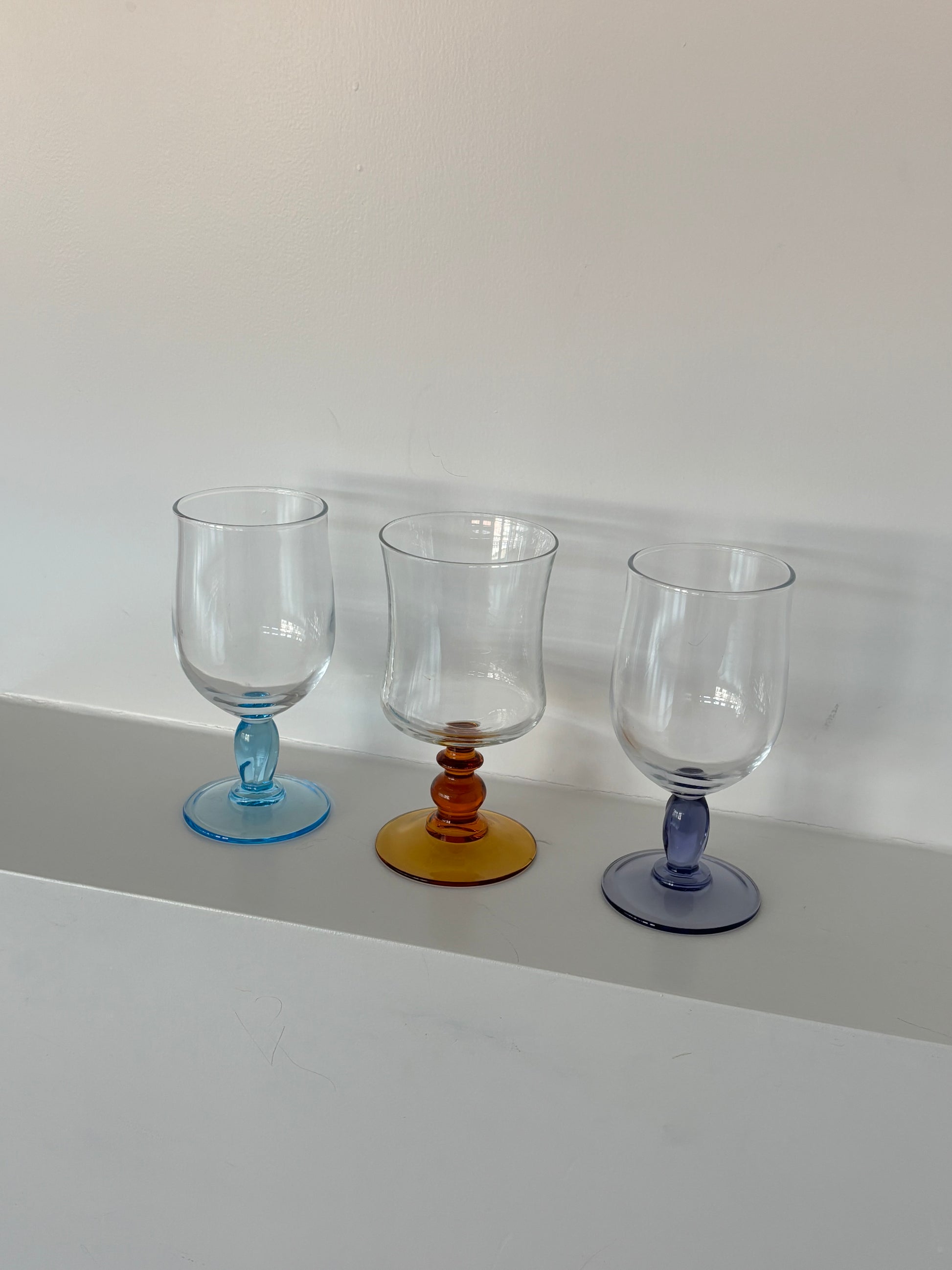 Set of three mixed wineglasses. Perfect for serving some wine or another drink. There are two sets available of 3.