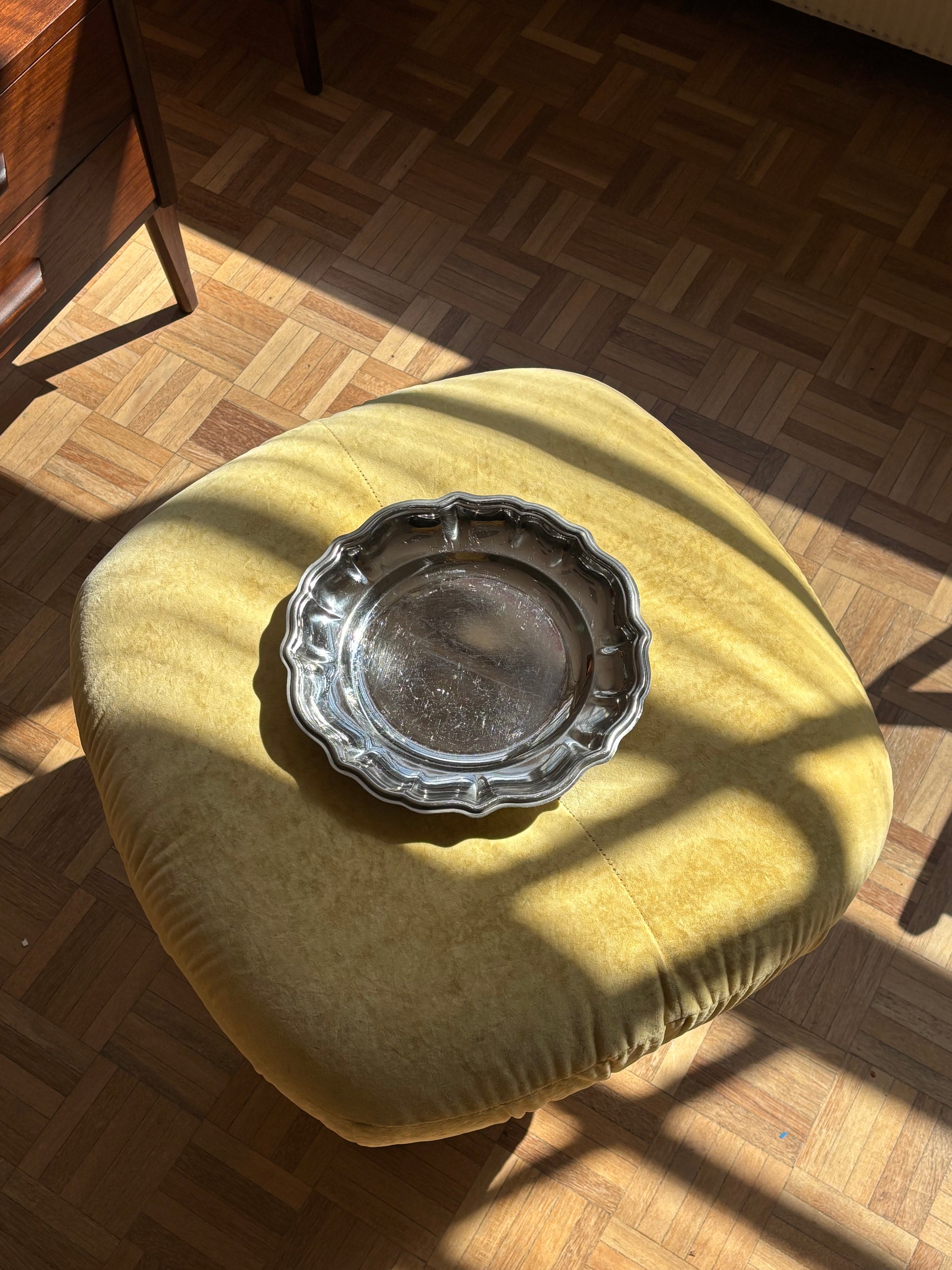 This round serving dish is pure presence. Polished to a mirror shine, it reflects everything around it — candlelight, conversation, the glint of olives or a perfect wedge of cheese. Made from stainless steel and shaped with soft curves, it's like something from a 1970s dinner party where everything shimmered, including the cocktails.
