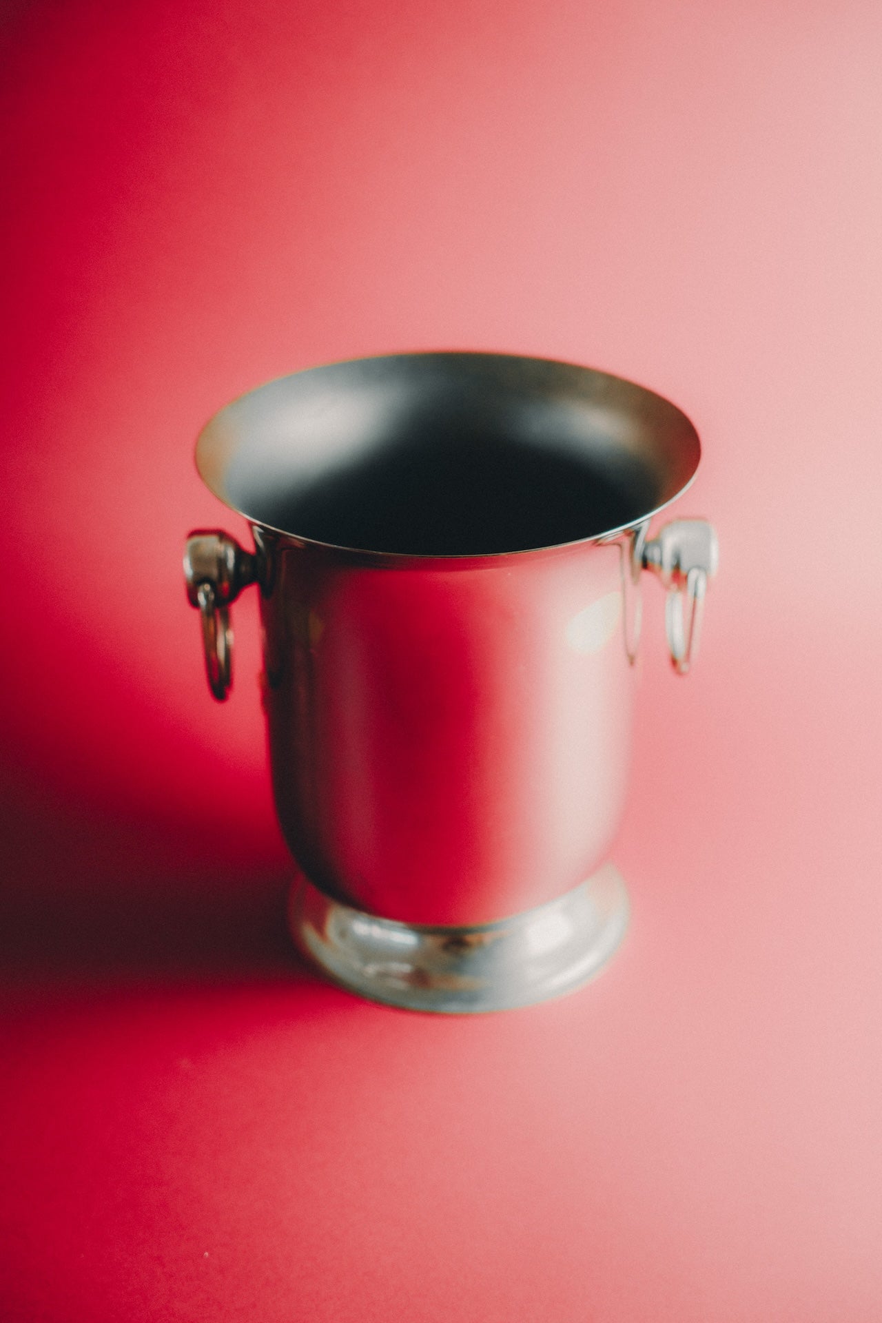 Modern stainless steel champagne cooler. Perfect to add a bit of elegance to your holiday table.