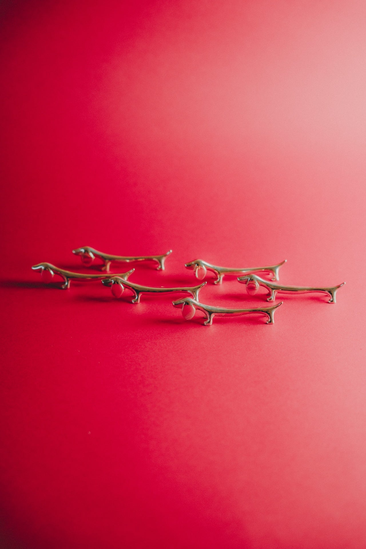 Set of six silver plated dachshund knife holders. Perfect for a fancy dinner. It's all in the details. Two sets available. They come in their original packaging.