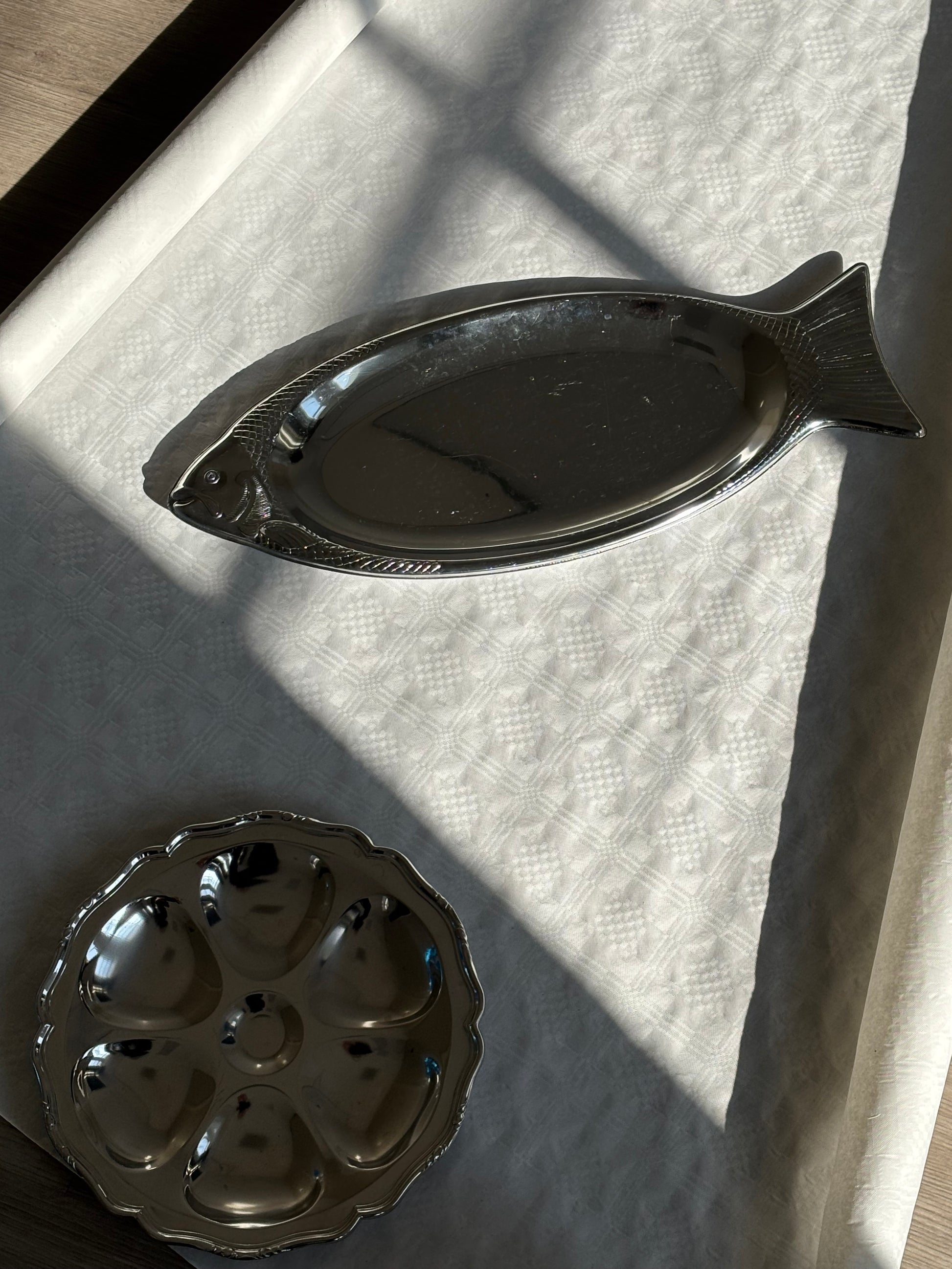 Stainless steel serving fish dish. How cool is this one? Use it for your favourite fish dish or something totally different.
