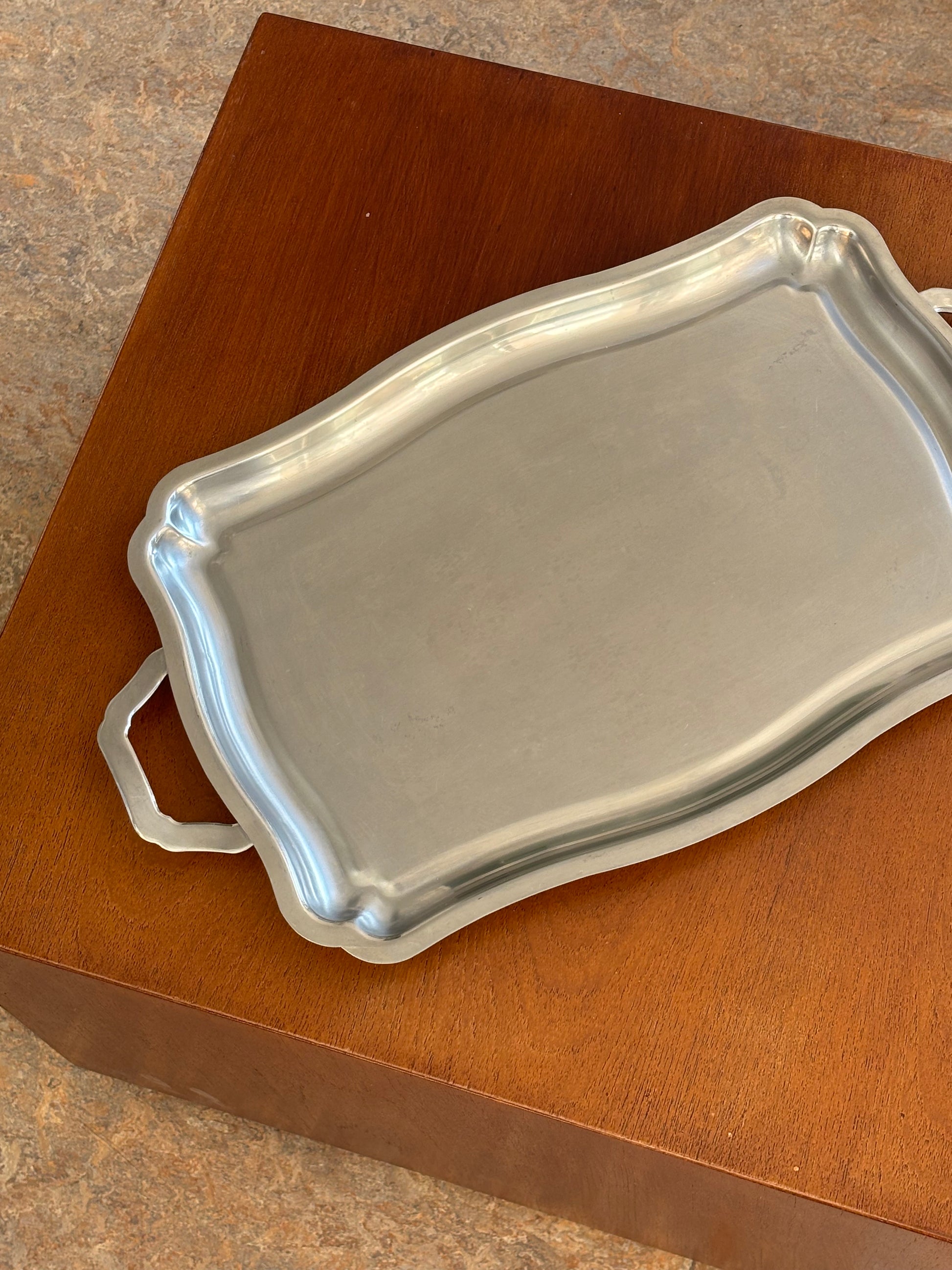 This stainless steel serving tray balances sleek style with everyday practicality. Its smooth, reflective surface adds a subtle shine, while sturdy handles make carrying effortless and comfortable.