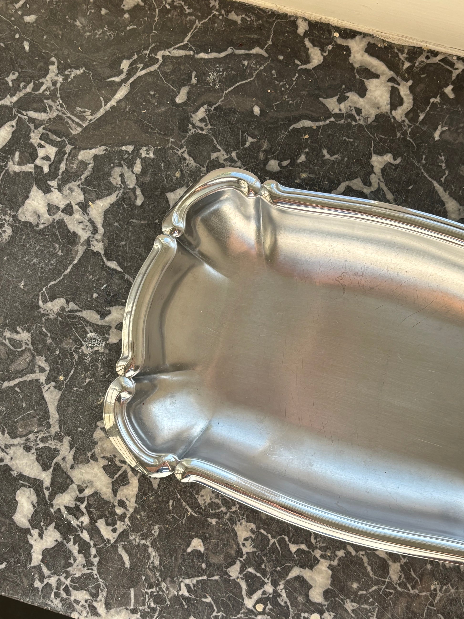 This rectangular bowl, crafted from brushed stainless steel, has a quiet kind of beauty — soft to the touch, matte in its finish, and balanced in its form. The subtle texture gives it depth, catching light in a muted glow that feels more like a whisper than a shine.